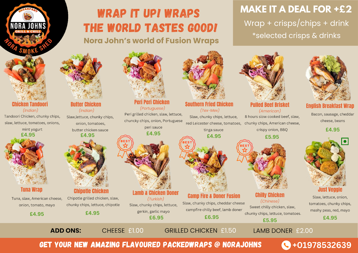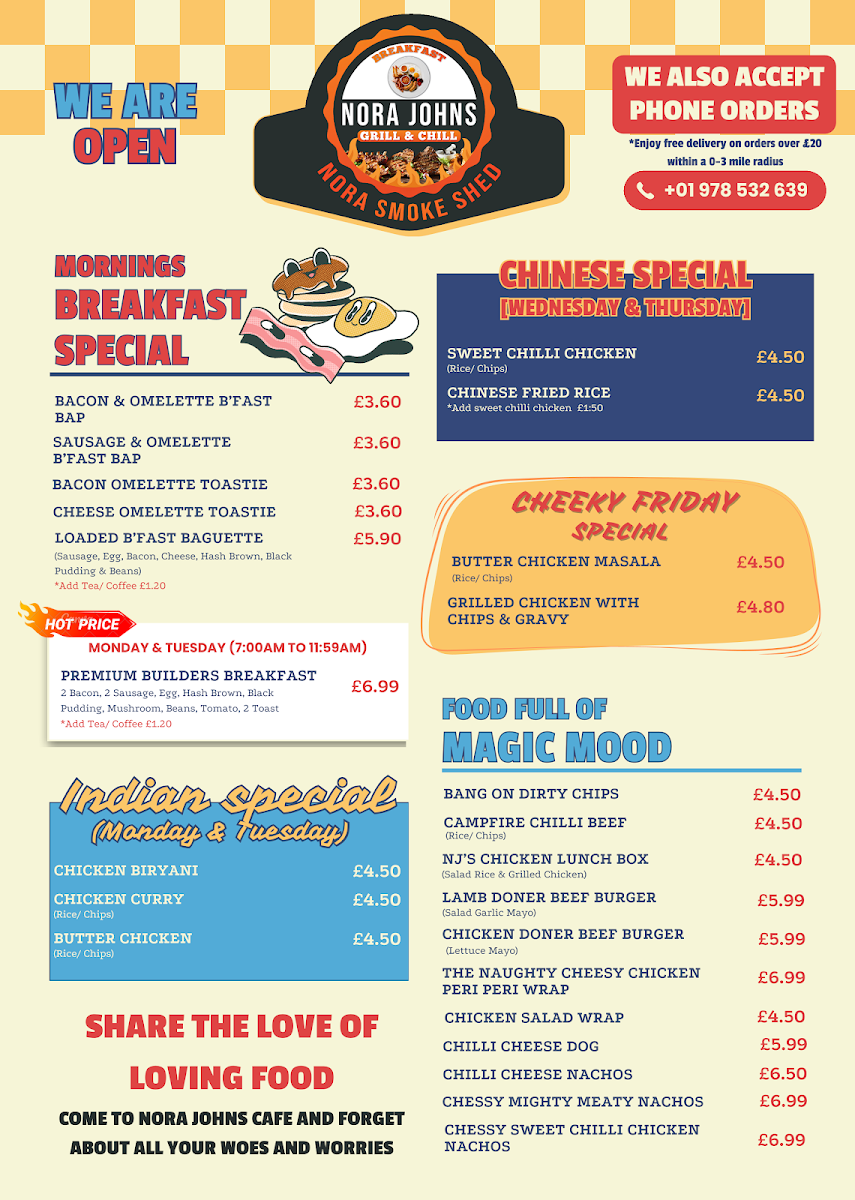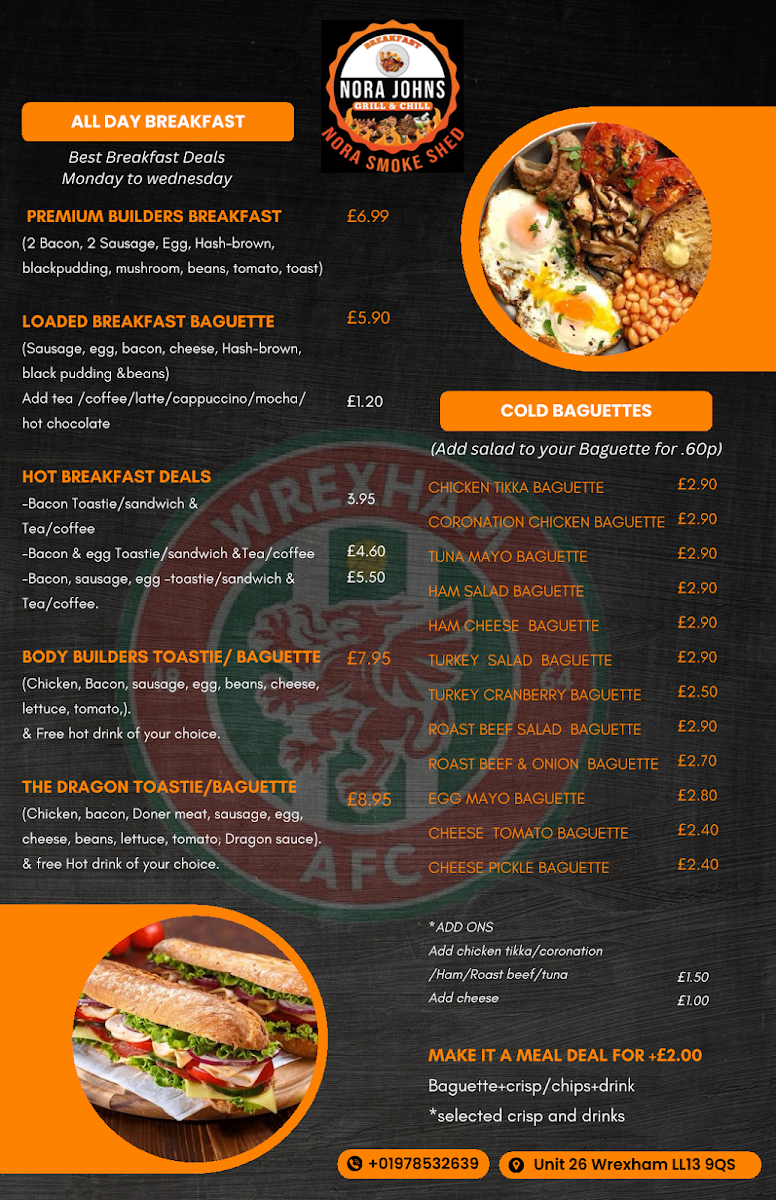 Welcome to NoraJohns Cafe, a culinary gem nestled in the heart of Wrexham at Bridgeway Centre. This cozy eatery offers a diverse menu that caters to breakfast lovers and lunch seekers alike. Start your day with delightful Breakfast Toast options like the classic Eggs On Toast or the hearty Cheesy Beans On Toast, showcasing warmth in every bite.